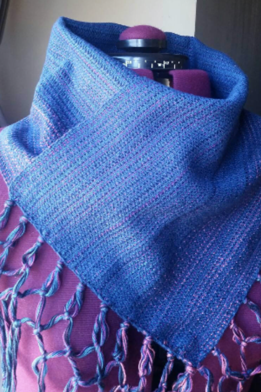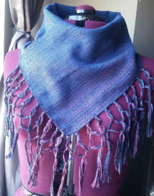 The piece is hand sewn together on the two fringed sides. Simply pop it over your head!